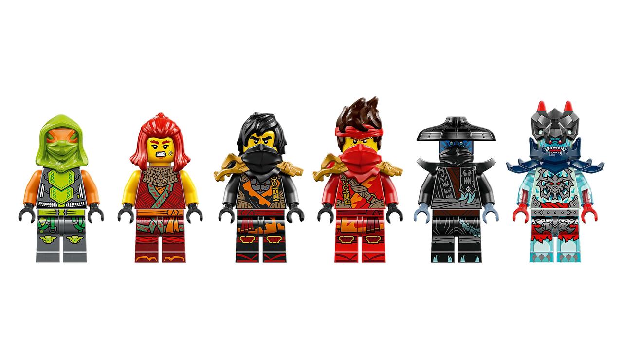 6 мініфігурок: Кай, Вайлдфайр, Коул, Нокт, Примарний Розвідник-Дракон і вперше Фрак